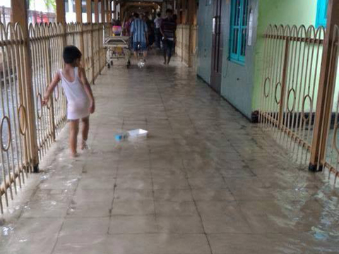Hujan yang mengguyur Kota Surabaya membuat RSUD DR. Soetomo banjir. (dop)