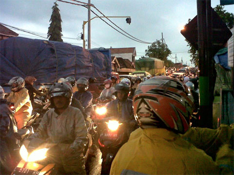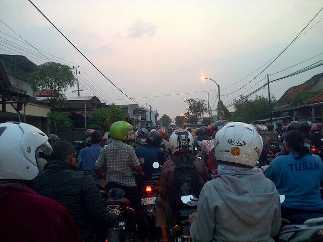Kawasan Branjangan macet total, karena ada truk mogok, Jumat (6/2/2015) sore. Bahkan antrean kendaraan sampai depan Terminal Oso Wilangun, Surabaya.(ipg)