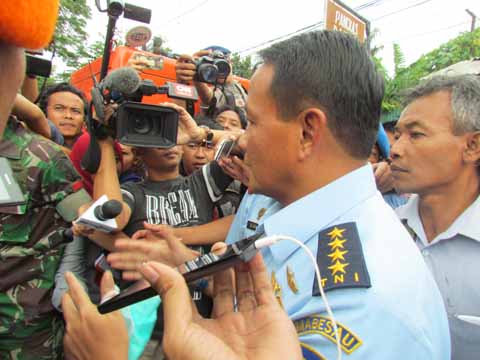 Marsekal TNI Agus Supriyatna, Kepala Staf TNI Angkatan Udara memberikan keterangan awak media di jalan LA Sucipto, Malang, lokasi jatuhnya Super Tucano TT-3108, Rabu (10/2). (ham)
