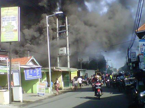 Sebuah rumah di Geluran Taman-Pondok Jati, Sidoarjo, Kamis (12/2/2015) terbakar. Asap membumbung tinggi. PMK Sidoarjo sudah mengirimkan 2 unit PMK ke lokasi. (ras/ipg)
