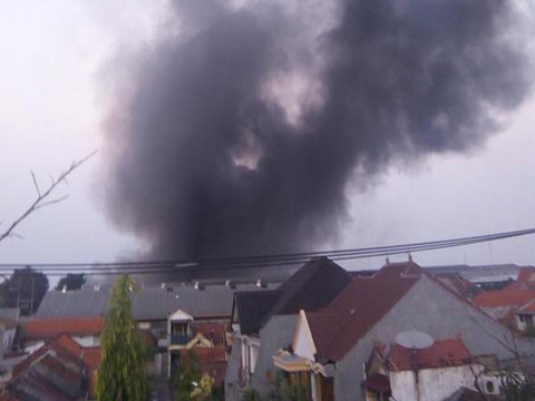 Kebakaran terjadi di Wadungasih Buduran Sidoarjo pk. 17.30 WIB, Jumat (1/8/2014). Tampak dari foto, asap hitam terlihat mengepul pekat di langit. Aiptu Bambang petugas Polsek Buduran melaporkan, dua unit PMK dan lima petugas sudah di lokasi. (ham)