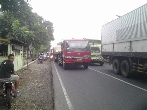 Truk ini melawan arus di jalur Probolinggo – Jember yang Macet. (prm)