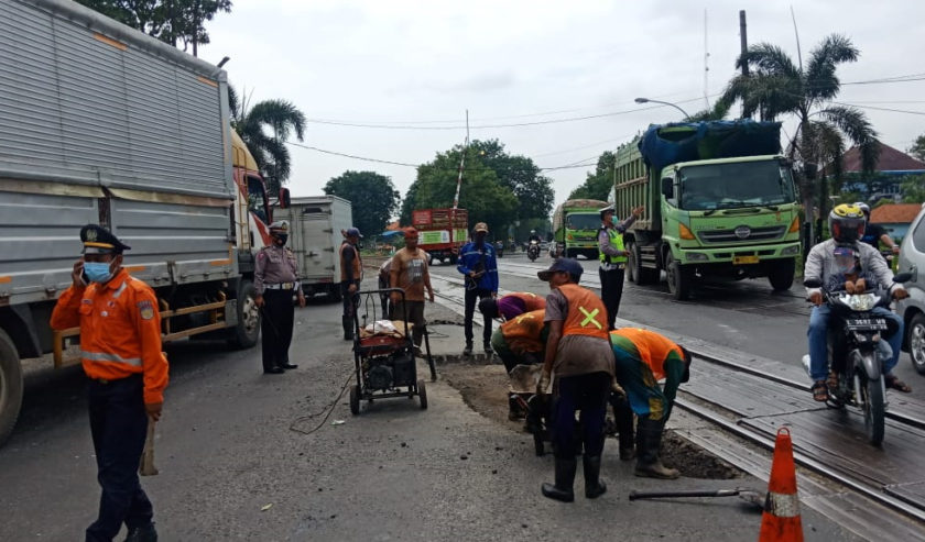 Perbaikan Jalan di Dekat Perlintasan KA Lamongan