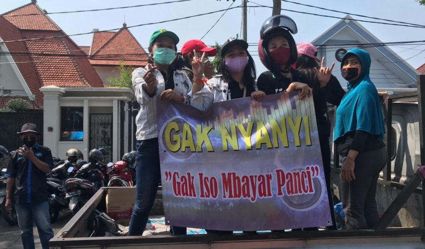 Peserta unjuk rasa dari Aliansi Pekerja Seni Surabaya di Balai Kota Surabaya pada Rabu (5/8/2020). Foto : Wiwin Alwiyatus Siyam via @e100ss
