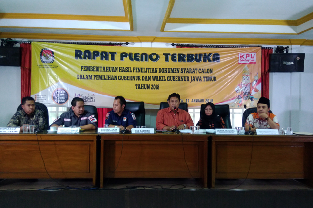 KPU Umumkan Hasil Penelitian Berkas Calon Pilgub Jatim 17 Januari
