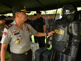 – Irjen Pol Unggung Cahyono Kapolda Jatim memeriksa kesiapan personel dan peralatan pengamanan untuk Pilpres 2014.