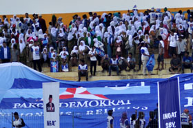 Ibu-ibu muslimat ini mengaku datang tidak hanya dari Sidoarjo, melainkan juga dari Pasuruan, Mojokerto, Malang dan Surabaya. “Kami datang atas nama pribadi karena kami codok dengan Demokrat. Sengaja kami datang pakai seragam muslimat agar gampang koordinasinya,” kata Muslihah, perwakilan Muslimat Surabaya.