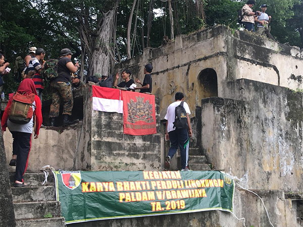 Puluhan warga Surabaya yang tergabung dalam Roodebrug Soerabia bekerja bakti membersihkan Benteng Kedung Cowek, Surabaya pada Minggu (24/3/2019). Arief Yanuar Ketua Roodebrug Soerabia mengatakan, acara semacam ini sudah digelar sejak empat tahun lalu.