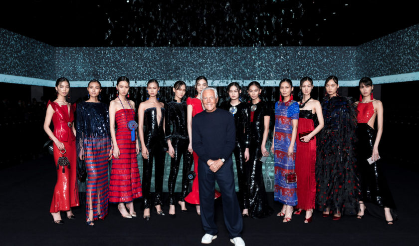 Giorgio Armani (tengah) perancang busana bersama sejumlah model usai pagelaran busana untuk koleksi Musim Gugur/ Musim Dingin 2020 dalam ajang Milan Fashion Week. Foto: Instagram/@giorgioarmani