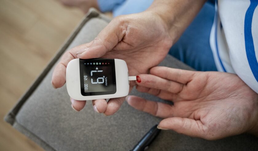Ilustrasi seorang menggunakan glukometer. Glukometer adalah alat portabel elektronik yang digunakan untuk mengukur kadar glukosa (gula) dalam darah1. Foto: Health