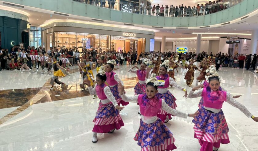 Ratusan penari dari berbagai daerah di Indonesia memeriahkan ajang Indonesia Menari 2025 yang diselenggarakan di Ciputra World Mall, Surabaya, Jawa Timur, Minggu (12/10/2025).