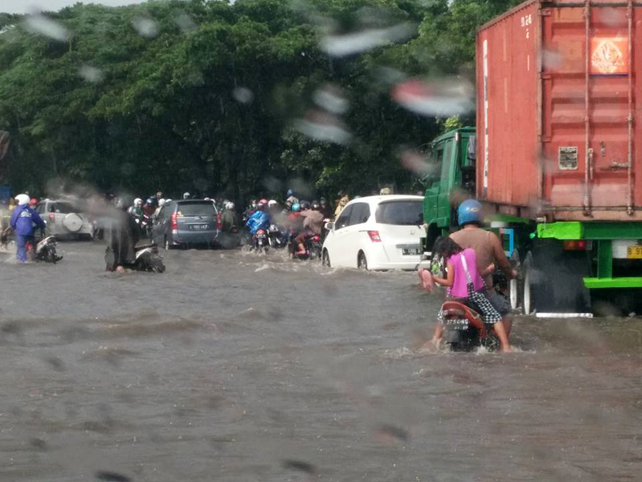 Hindari! Jalan Margomulyo Macet Total Imbas Genangan Banjir
