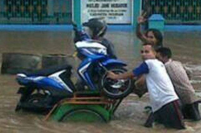 Pasuruan Banjir Parah, Sepeda Motor Terpaksa Diangkut Becak