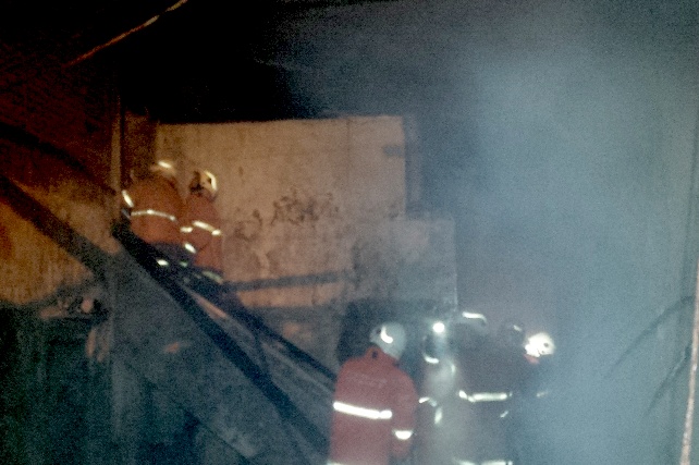 Api Sulit Dipadamkan, Petugas PMK Padamkan Api di Gudang Kayu Dari Segala Arah