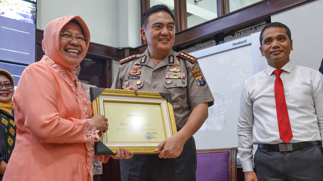 Wali Kota Surabaya Beri Penghargaan pada Kapolrestabes Surabaya dan Kasat Reskrim