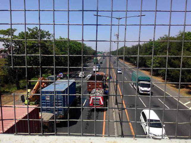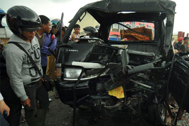 Truk Trailer Tabrak Truk Muat Kayu yang Mendadak Mogok, Sopir Terjepit