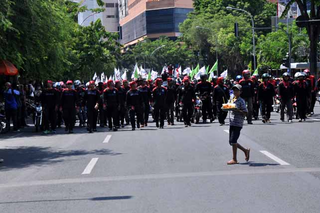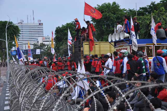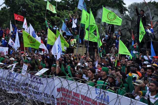 Buruh Datangi Grahadi Desak Penetapan UMK Plus 10 Persen