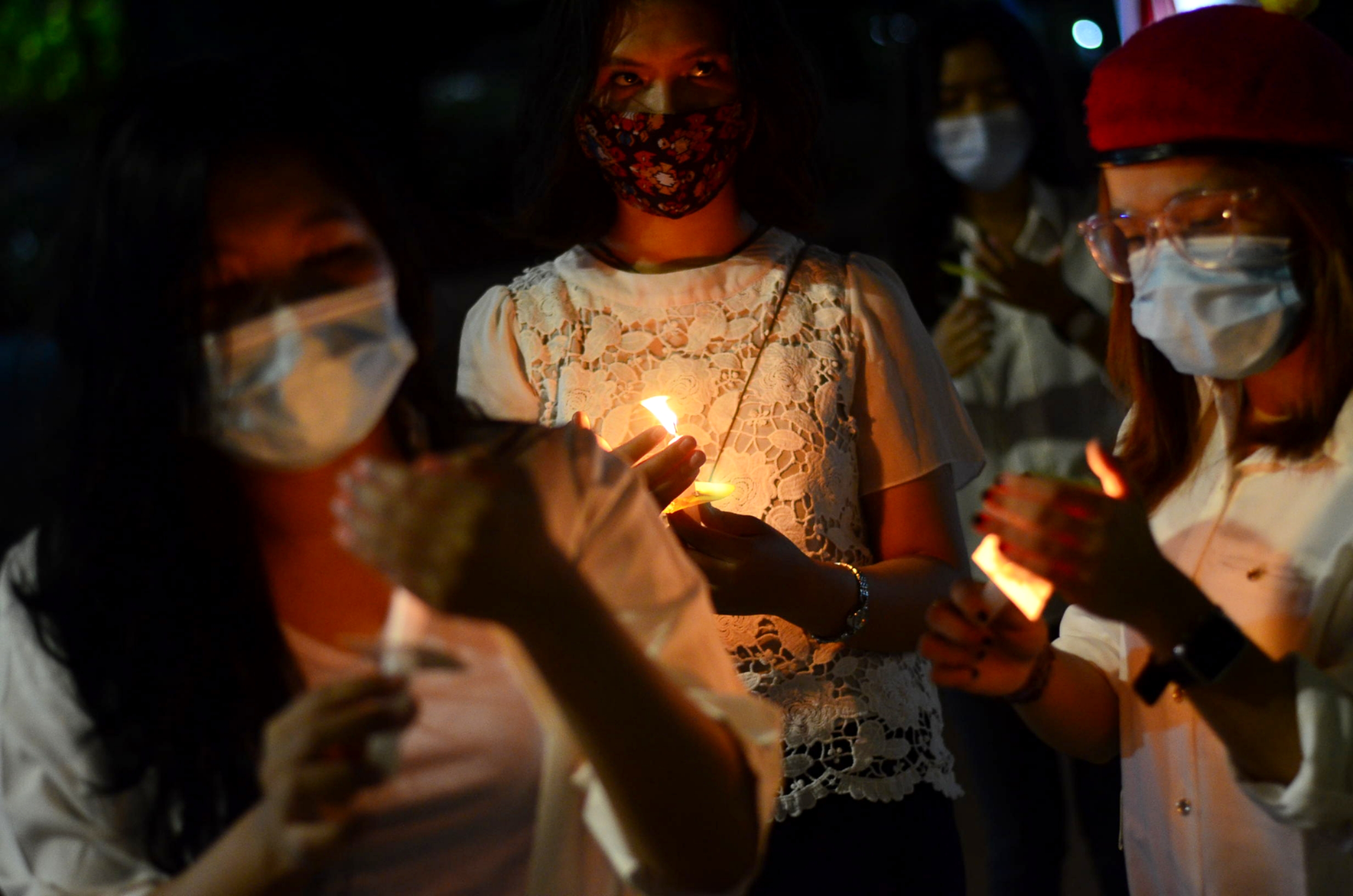 Puluhan Muda-Mudi PMKRI Surabaya Nyalakan Lilin di Tugu Pahlawan