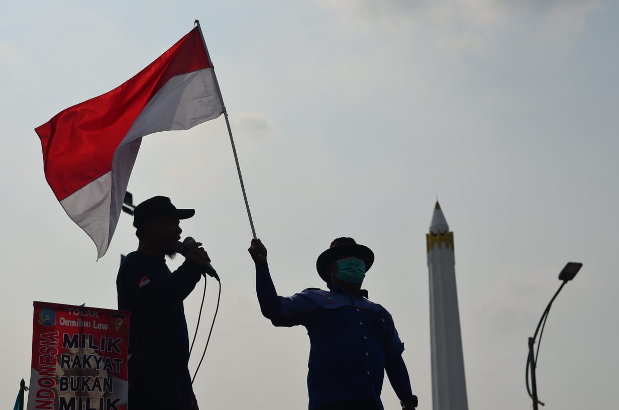 Kelompok Buruh dan Mahasiswa Penolak UU Cipta Kerja Kembali Unjuk Rasa di Area Monas