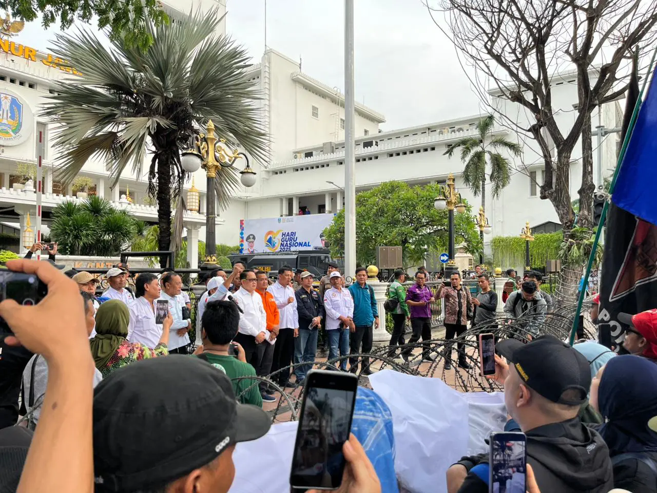 Ribuan Buruh Demo Tuntut Kenaikan UMP 2026 Jadi Rp3,3 Juta di Kantor Gubernur Jatim