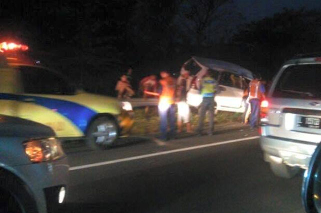 Mengantuk, Avanza Tabrak Median Jalan Hingga Terguling