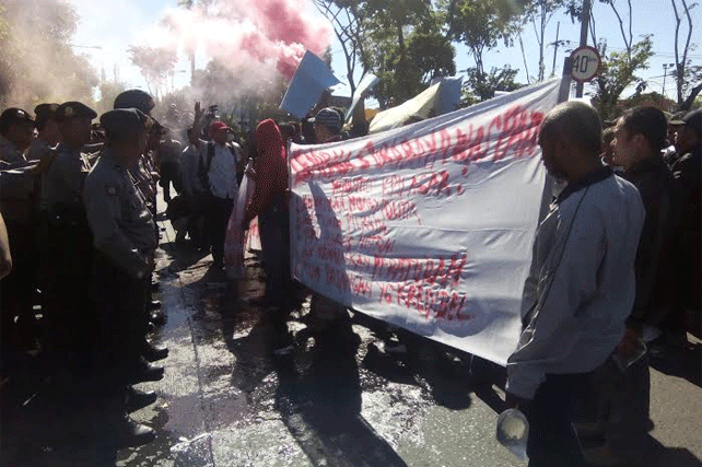 Ricuh, Pendukung Salah Satu Paslon Demo di Depan KPU Kota Surabaya