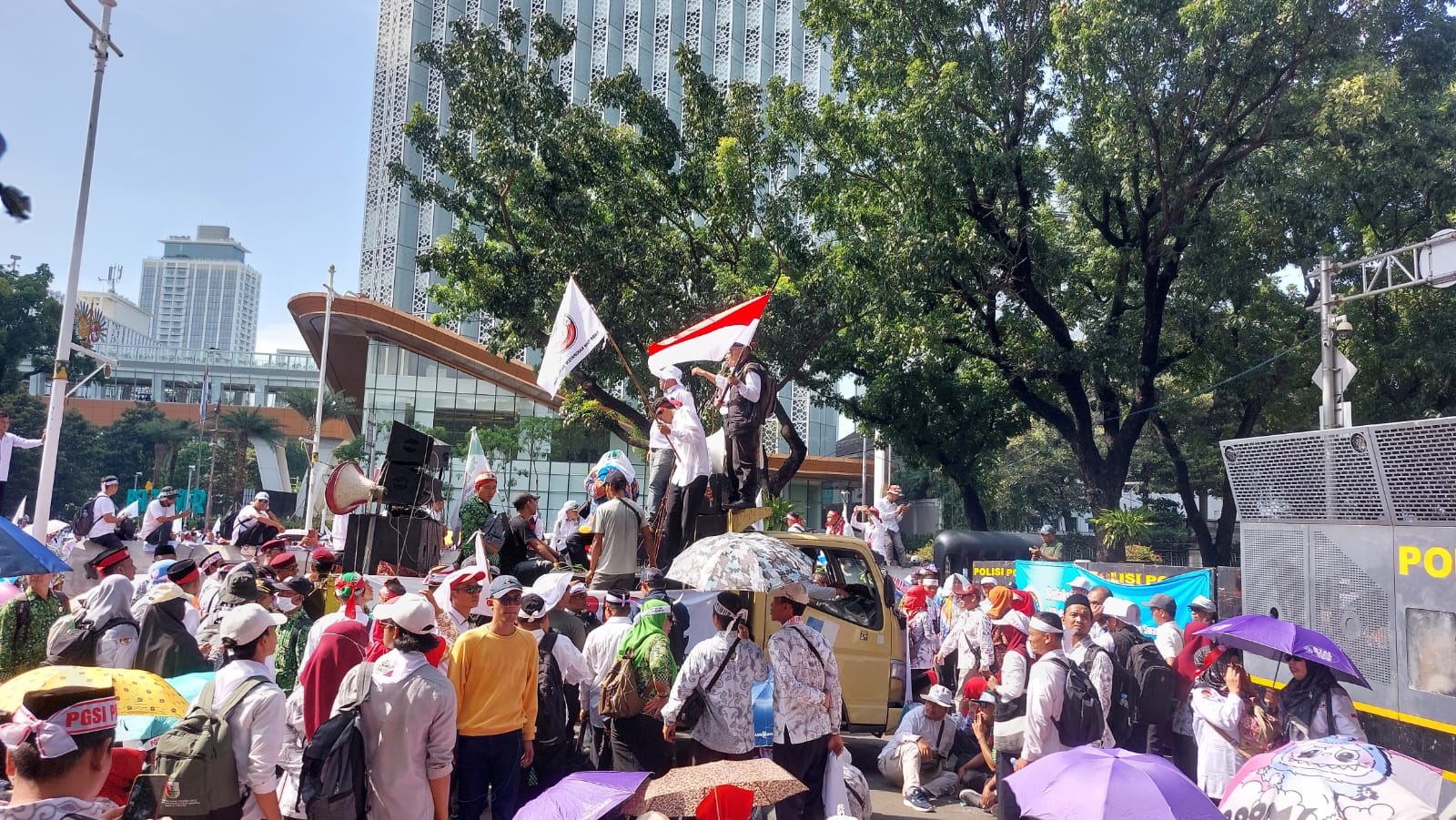 Massa Aksi di Depan Kantor Gubernur Jatim Balik Kanan dengan Tertib Usai Ditemui Kadisnaker