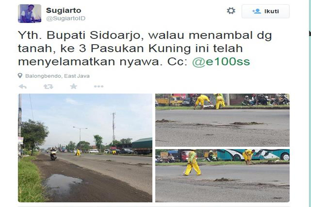 Banyak Jalan Rusak, Dinas PU Sidoarjo Minta Masyarakat Sabar