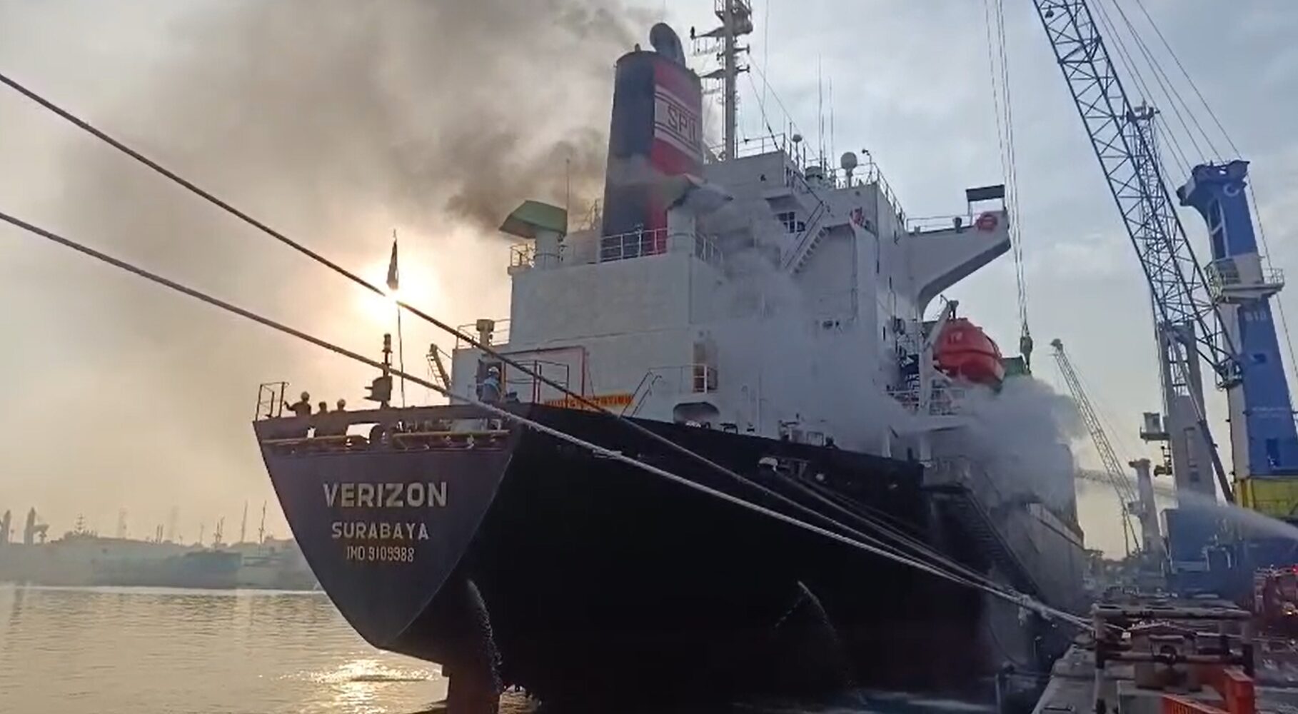 Mesin Kapal Kontainer di Pelabuhan Tanjung Perak Terbakar pada Senin Pagi