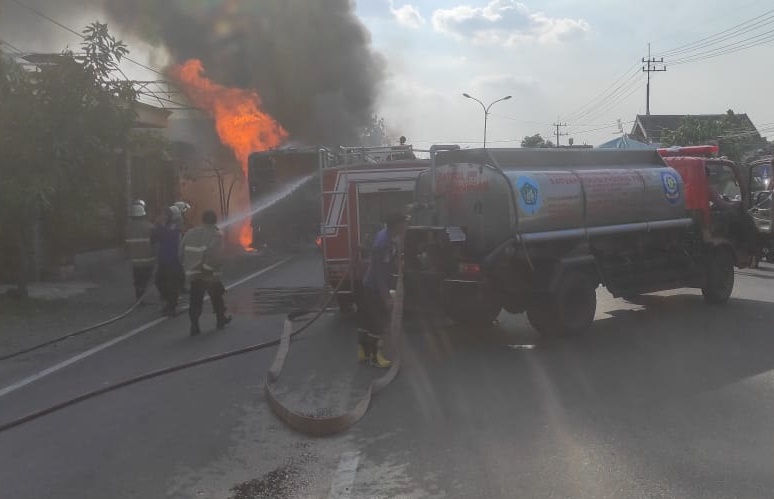 Bus Terbakar di Turi Lamongan, Petugas PMK Bergegas Lakukan Pemadaman