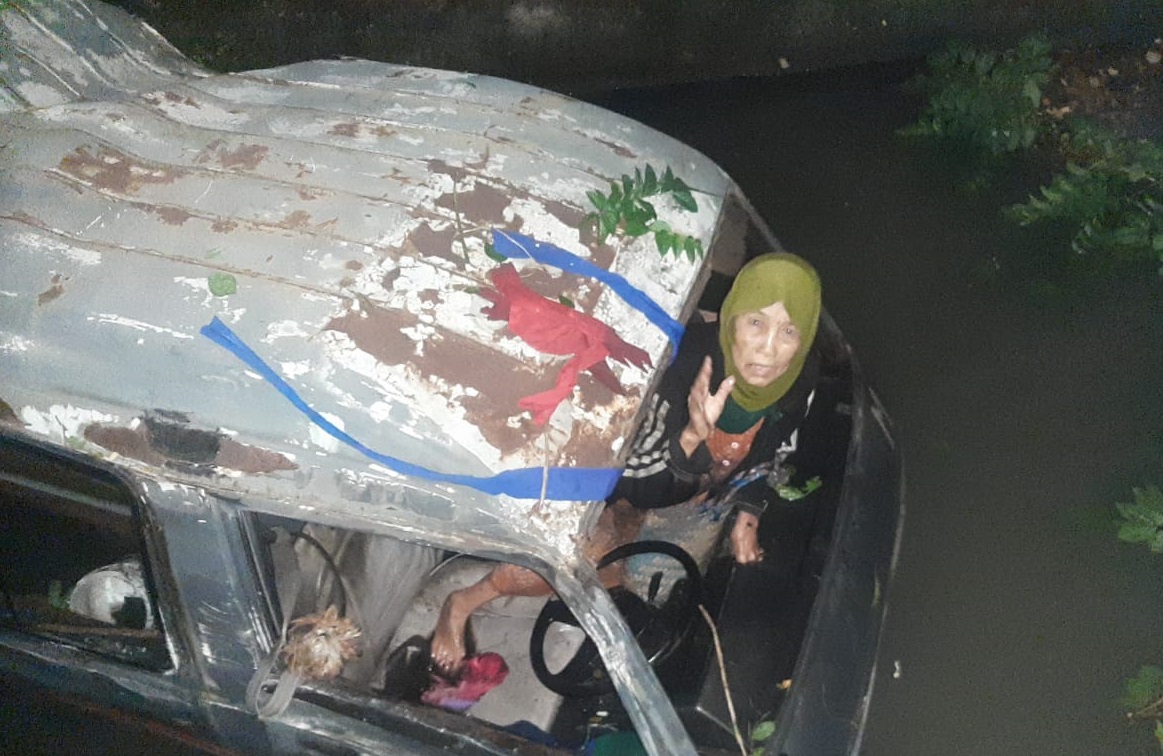 Pikap Tabrak Angkot, Dua Lansia Masuk Selokan di Jalan A. Yani