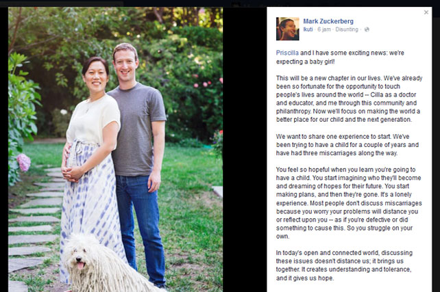 Mark Zuckerberg Sumbangkan 99 Persen Sahamnya di Facebook
