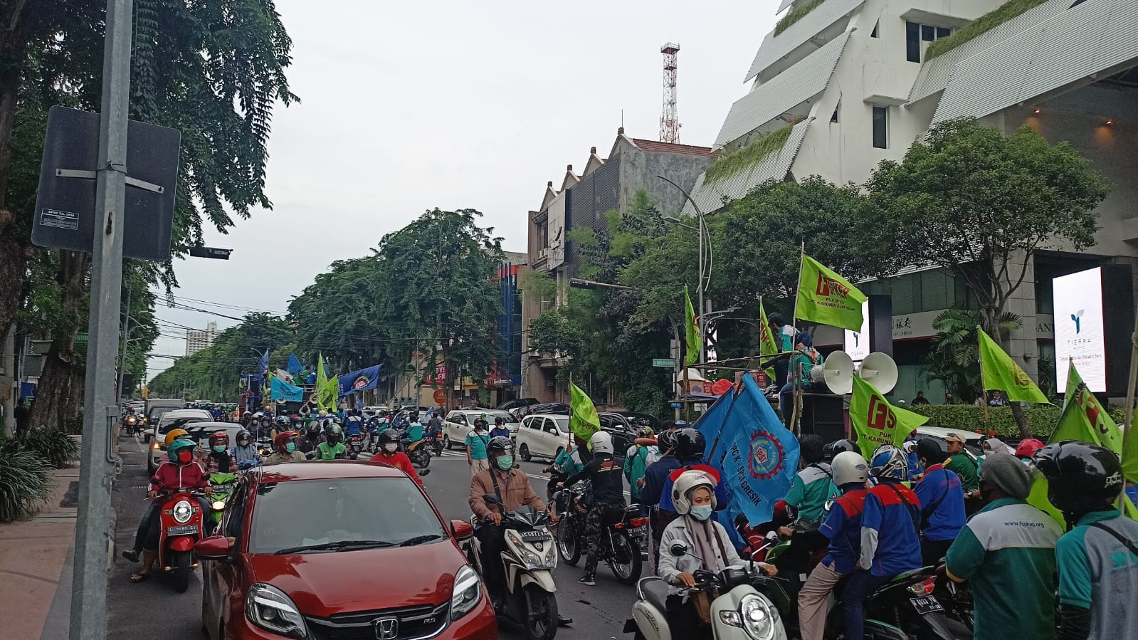 Massa Buruh Long March Melawan Arus Jalan Panglima Sudirman