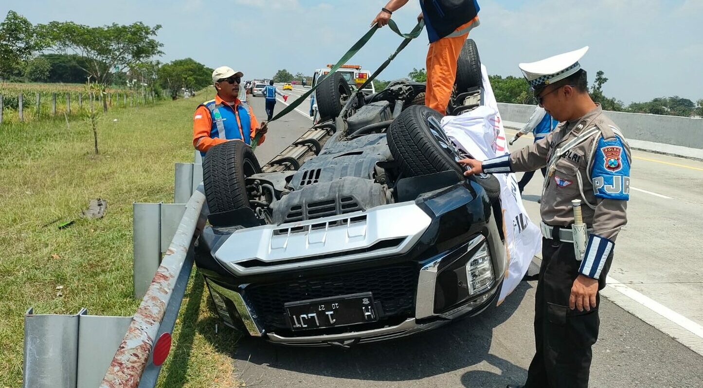 Pajero Terbalik di Tol Caruban–Kertosono, Diduga Akibat Pengemudi Rush Mengantuk