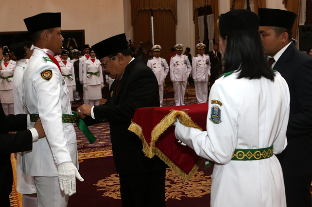 Anggota Paskibraka Dikukuhkan Gubernur Jatim di Grahadi