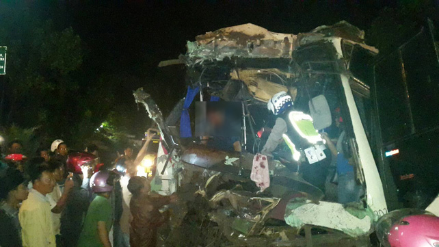 Bus Mila Tabrak Truk Kontainer, Sembilan Penumpang Terluka