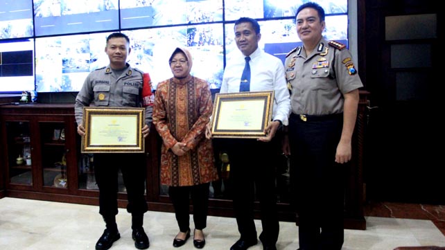 Risma Beri Penghargaan Kabag Ops dan Kasat Intelkam Polrestabes Surabaya