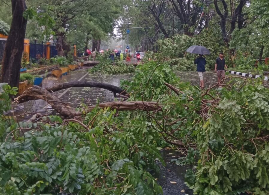 Hujan Deras Disertai Angin Kencang Rabu Sore di Surabaya Bikin Pohon Tumbang dan Reklame Roboh