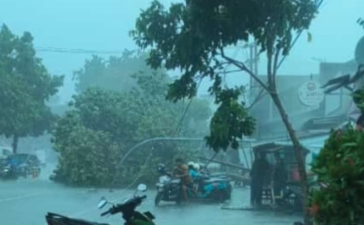 Hujan Deras Sebabkan Pohon dan Tiang Listrik Roboh di Kranggan Surabaya