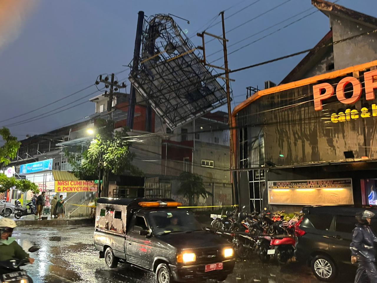 Jalan Kranggan Surabaya Gelap Gulita Akibat Tiang Listrik Patah dan Pohon Tumbang