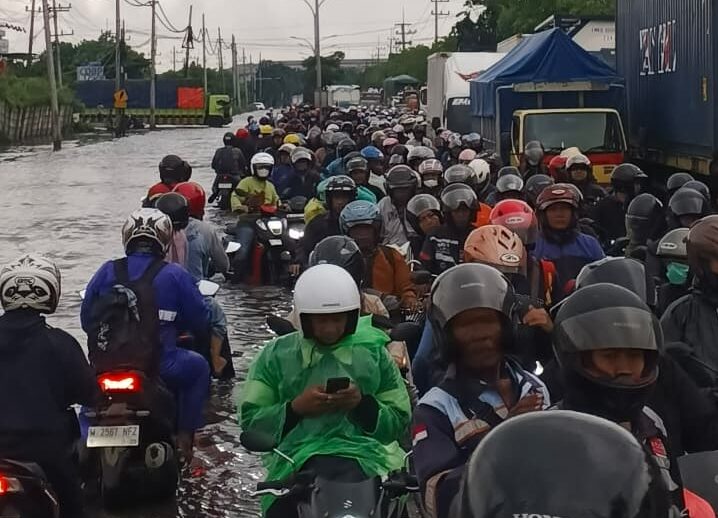Banjir Rob Senin Pagi, Tambak Osowilangun Macet dan Polisi Alihkan Arus Lalu Lintas