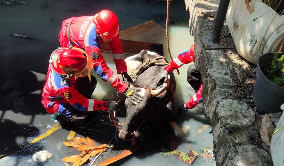 Sapi di Rungkut Surabaya Loncat Ke Sungai karena Kaget Dengar Klakson Motor