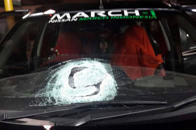 Pelaku Pelemparan Batu Paving Diduga Dua Orang Naik Motor