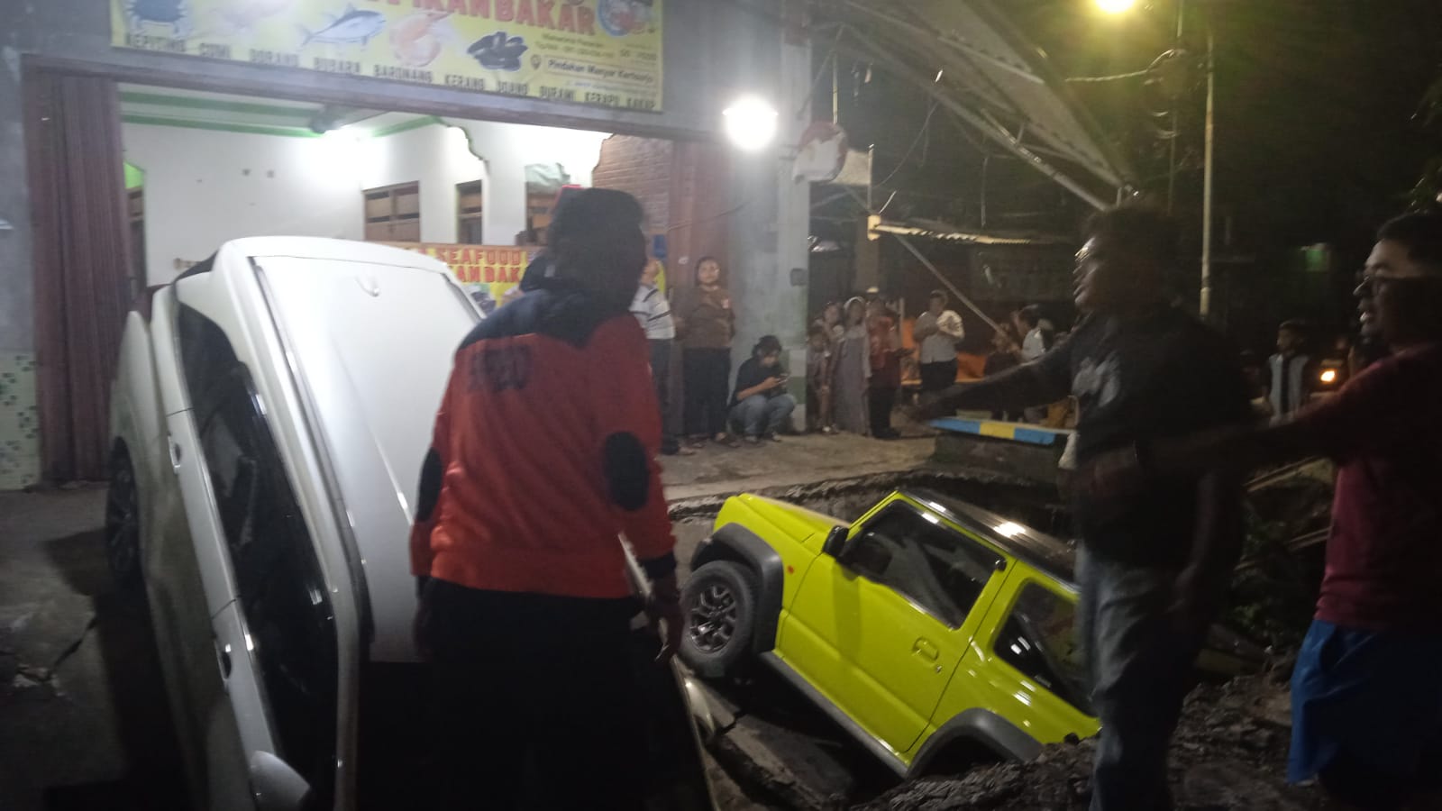 Dua Mobil Tercebur ke Sungai di Jalan Arif Rahman Hakim Surabaya