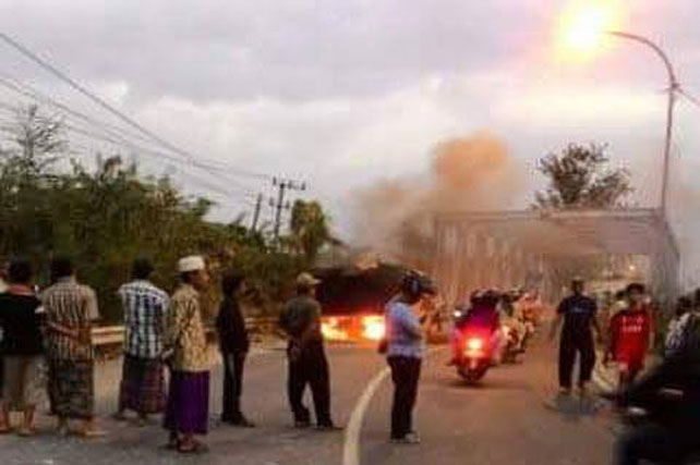 Terlibat Kecelakaan, Massa Bakar Truk di Sidayu Gresik