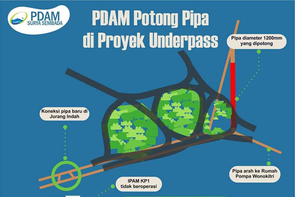 PDAM Surabaya Potong Pipa di Proyek Underpass, Aliran Air di Wilayah Ini Terganggu