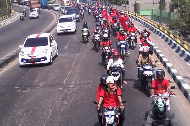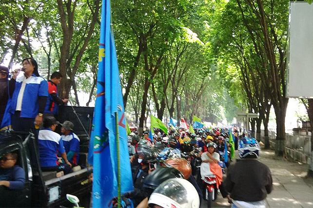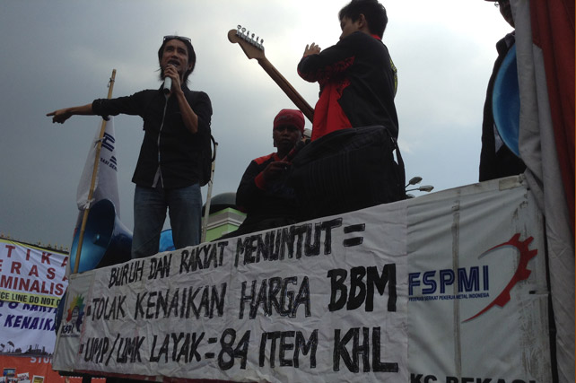 ‘Sakitnya Tuh di Sini’ Iringi Unjuk Rasa Buruh Tolak Kenaikan BBM