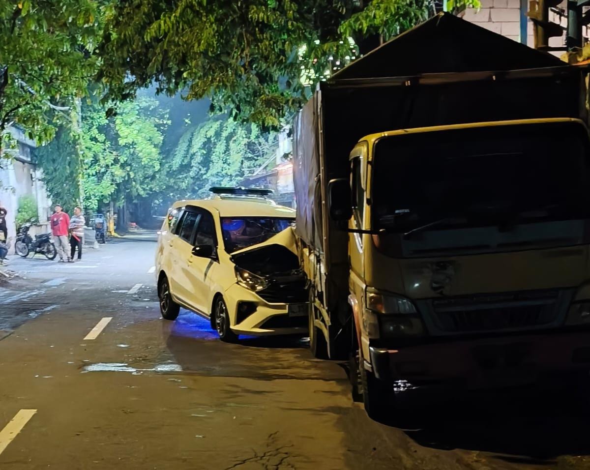 Mobil Sigra Tabrak Truk Parkir di Pagesangan Surabaya, Body Depan Ringsek